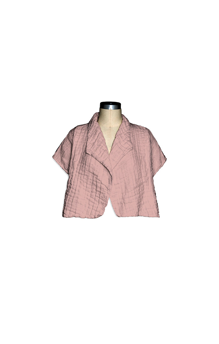 Made in a lightweight, lightly crinkled, cotton gauze, this hip-skimming topper has an open-front construction, with short sleeves and a self lapel, creating a seamless look. We love this over dresses, tanks, and even overalls as a lightweight cover up.