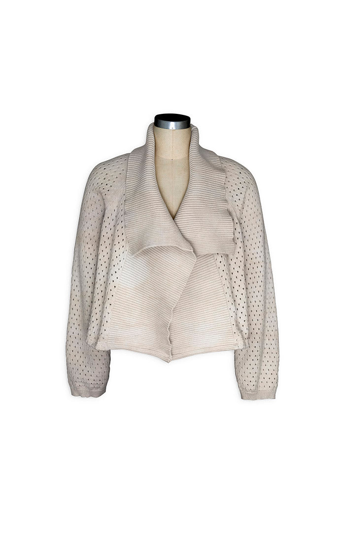 Color: The "Salt" color looks like an antique parchment; cream, gold and hints of a very soft lilac in some places. Each garment is hand dyed in Cynthia's Chicago studio and no two pieces will the same.