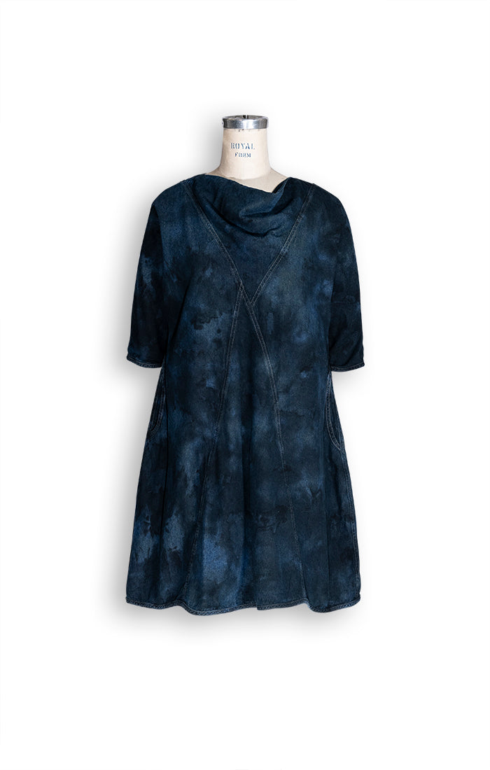 The Geneva dress in denim offers refined versatility for the modern wardrobe. Layer it over leggings as a tunic or wear it solo as a dress—this piece adapts to your lifestyle. A graceful cowl neckline and asymmetrical seaming create visual interest, while elbow-length sleeves and a sculpted fit flatter your frame. Practical deep pockets and an effortless pull-on design make getting dressed a pleasure. Crafted in the USA with machine-washable, sustainable fabric, the Geneva combines understated elegance with everyday wearability.