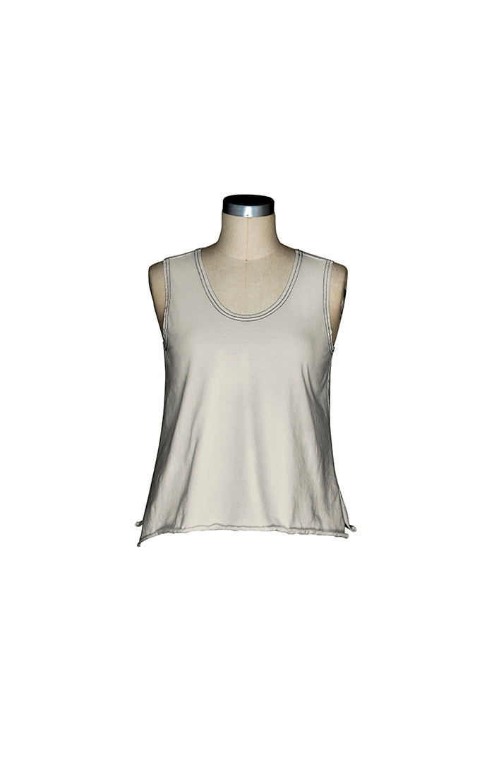 This soft cotton knit tank is your go-to for effortless layering. Bra-friendly straps and a scooped neckline keep things comfortable, while the relaxed A-line cut skims without clinging. Raw edges and side slits add a touch of ease and movement, hitting right at the high hip for that sweet spot between coverage and breathability. Simple, wearable, and ready for whatever comes next.