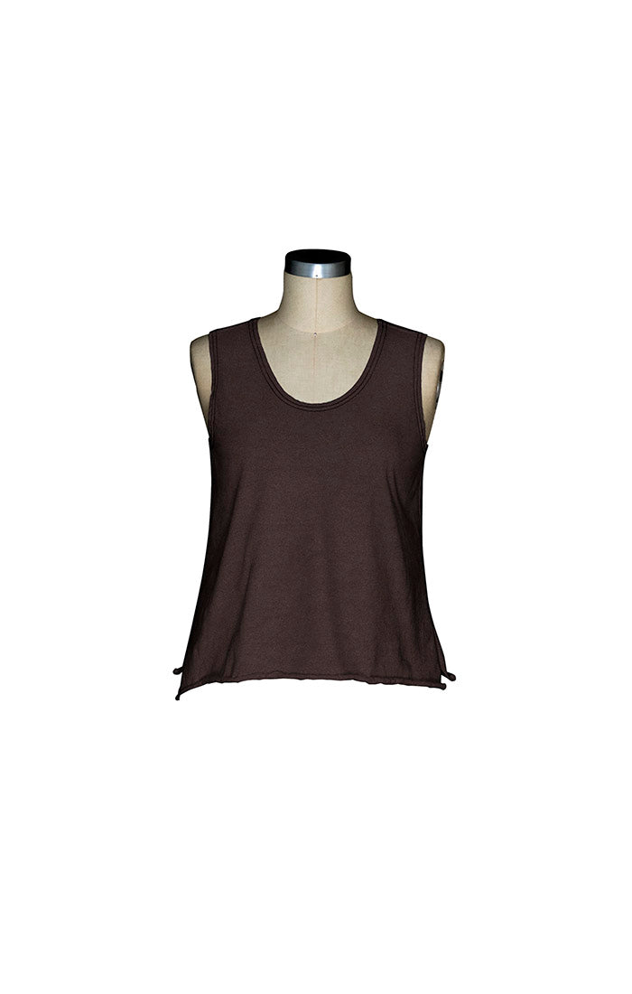This soft cotton knit tank is your go-to for effortless layering. Bra-friendly straps and a scooped neckline keep things comfortable, while the relaxed A-line cut skims without clinging. Raw edges and side slits add a touch of ease and movement, hitting right at the high hip for that sweet spot between coverage and breathability. Simple, wearable, and ready for whatever comes next.