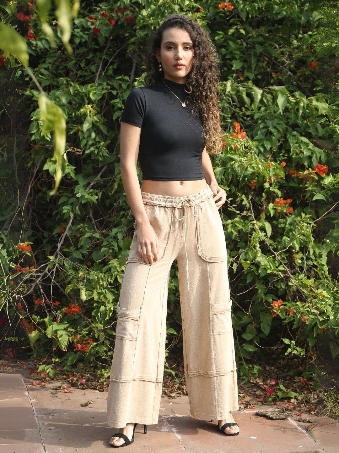Description: Step into effortless style with these Wide-Leg Utility Pants in a soft sand tone. Made from breathable cotton twill, these pants feature bold patch pockets and panel stitch details that add structure and edge. The wide-leg silhouette flows with ease, while the elasticated drawstring waist ensures all-day comfort. Whether you're running errands or dressing up for a casual outing, these pants bring a relaxed yet refined vibe to your wardrobe. Key Features: * 100% cotton twill – breathable, soft, and durable * Wide-leg fit for easy movement and flow * Oversized patch pockets on front and knees for utility appeal * Panel stitching adds structure and visual texture * Elasticated waistband with adjustable drawstring * Full-length cut with a relaxed silhouette * Sand color – a soft, neutral shade that pairs well with any top