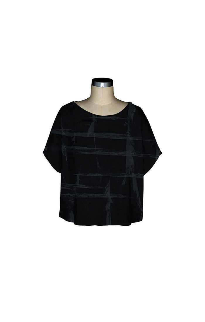 The Rosa Mesh Top presents a refined take on casual elegance, featuring a carefully constructed boxy silhouette in premium cotton mesh. Short sleeves and a relaxed fit provide understated comfort without compromising on style. The distinctive "Traffic" pattern—black graphic lines on black—brings a dynamic alternative to just a basic black top. Designed for effortless layering or standalone wear, this versatile piece transitions seamlessly from day to evening. One size fits most.