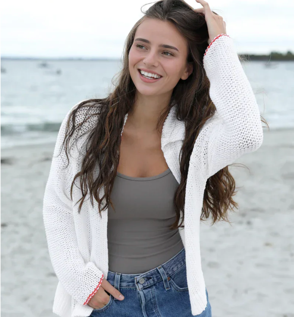 Designed for effortless layering, the Wooden Ships Chunky Cotton Heart Cardigan is a cozy yet breathable essential for transitional weather. Crafted from a soft cotton-blend yarn, this cardigan delivers warmth without heaviness—perfect for cool mornings, breezy evenings, and year-round wear.