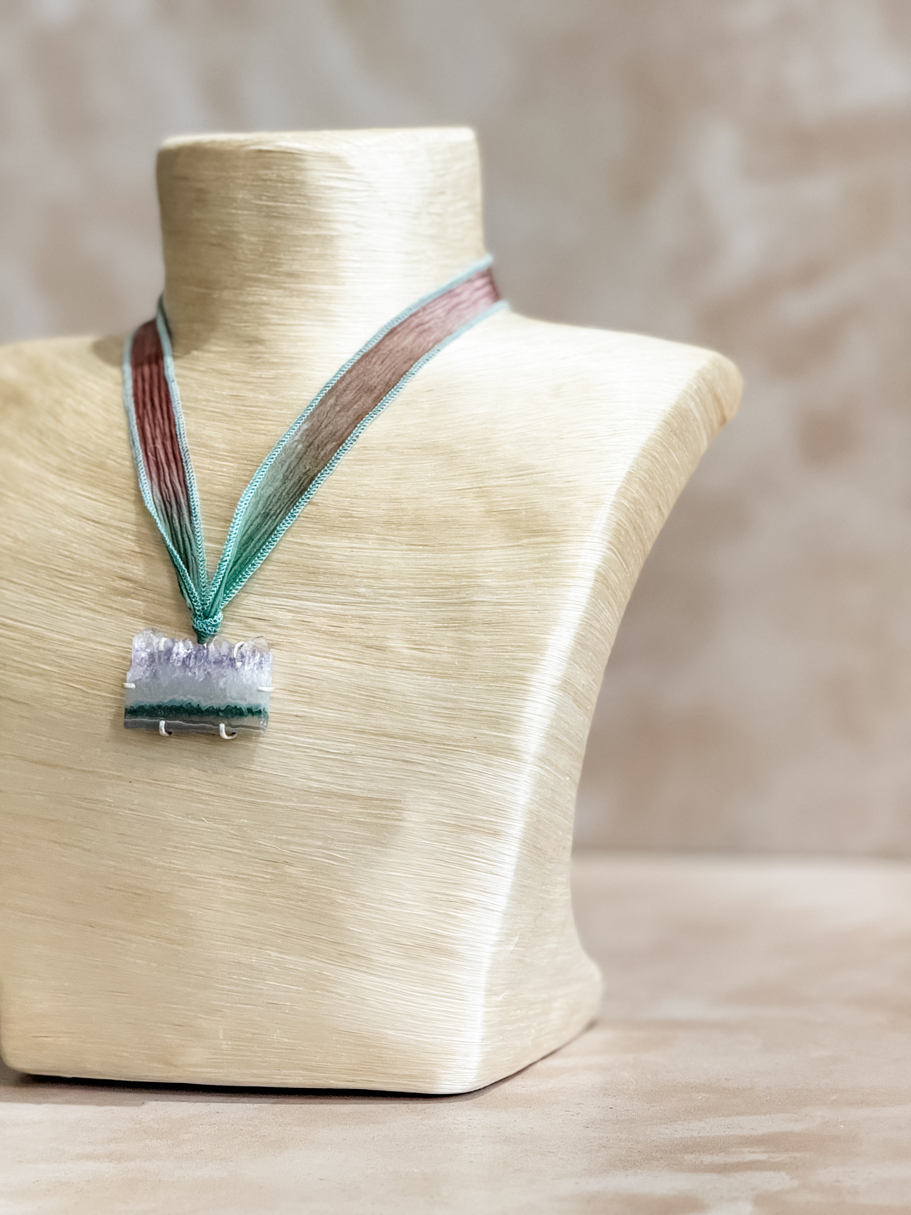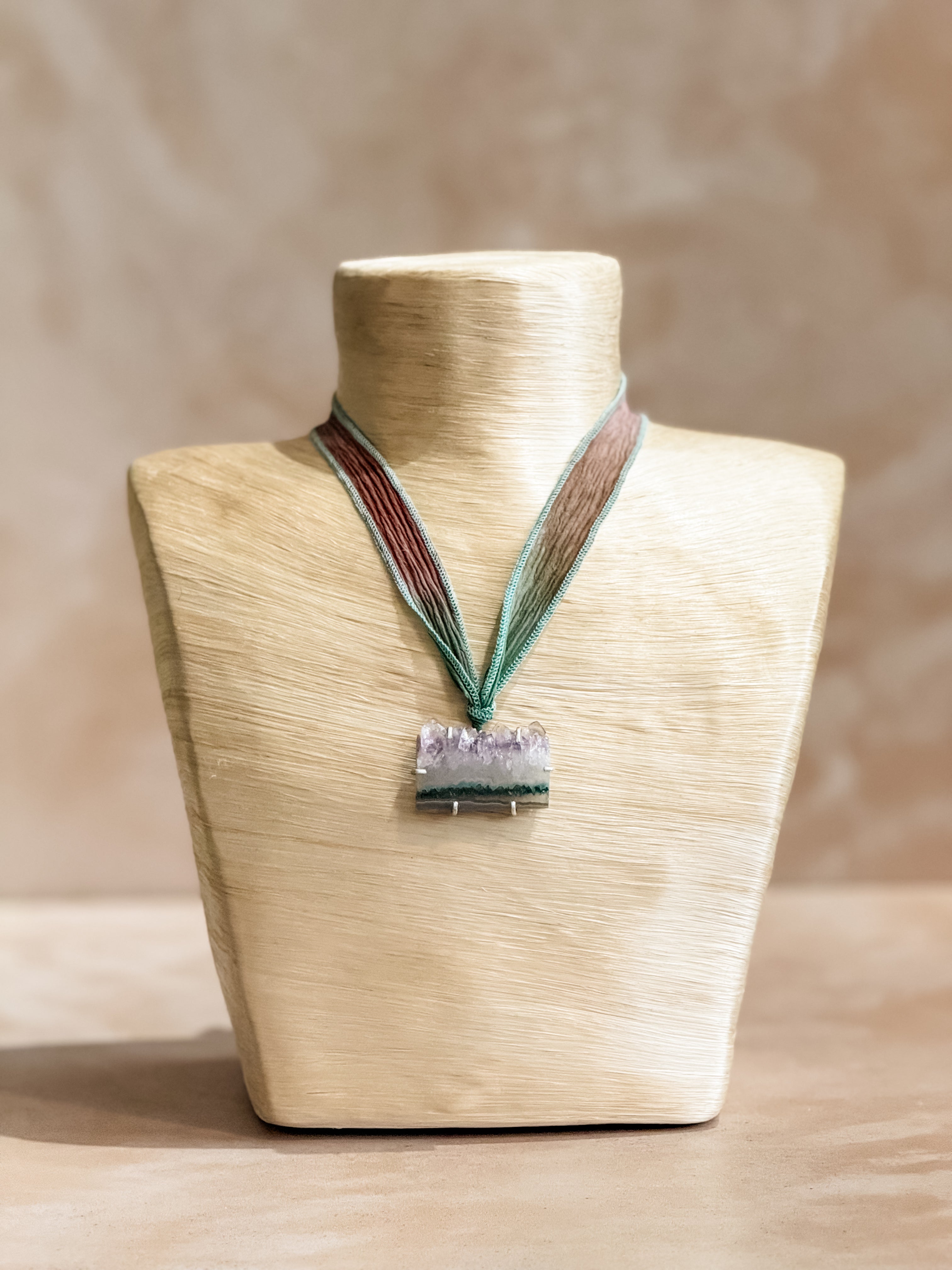 Amethyst Geode Silk Adjustable Necklace No.5